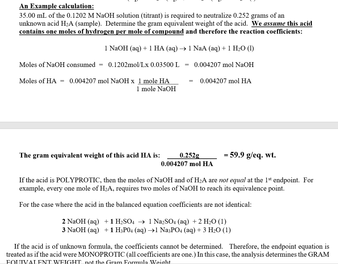 The unit of equivalent weight is an atomic mass unit. What is the correct setup to determine the equivalent weight (ew) of fluorine? That is, while element masses differ, when it comes to bonding with other atoms, the number of atoms, expressed in moles, is the determining factor in how much of a given element or compound will react with a given mass of another. Physical chemistry formulas list online. Where ew is the equivalent weight