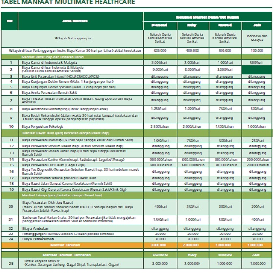 Tabel Premi Miultimate Healthcare Manulife : 3 Asuransi Kesehatan Keluarga Murni Terbaik Cashless Premi Murah Pinjaman Online Investasi Keuangan Asuransi Duwitmu - Manfaat penggantian biaya rumah sakit sesuai dengan yang tercantum pada tabel manfaat perawatan rawat inap, baik karena sakit maupun kecelakaan.